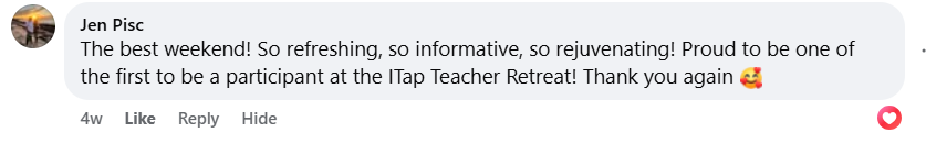 A: Only iTap Teacher Certificate Program graduates are invited. That means you’ll be surrounded by your people. No one else is invited!